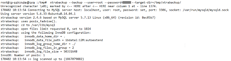 xtrabackup --backup --user=root --password=xxxx--target-dir=/tmp/xtrabackup